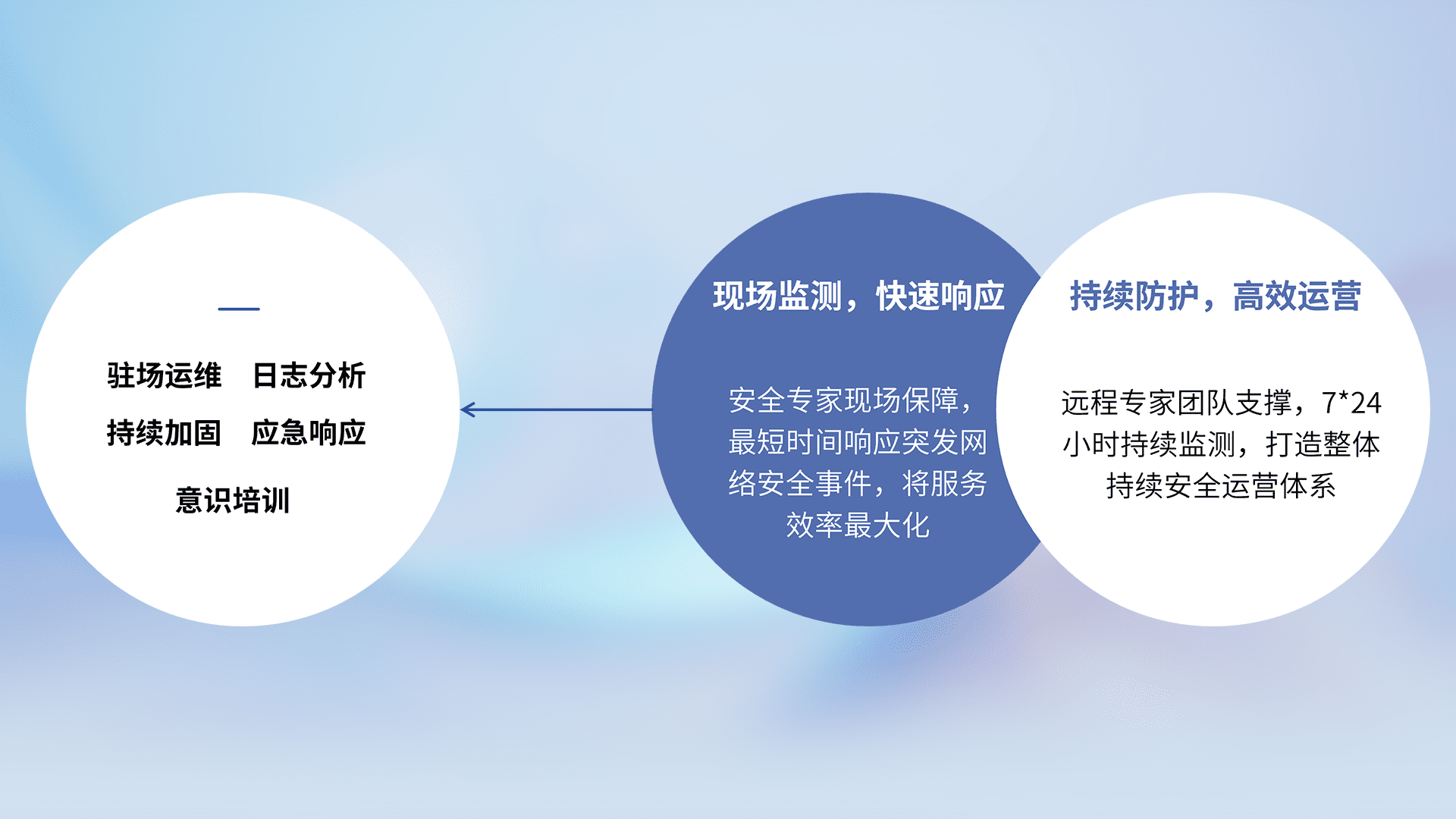 7X24小时持续监测安全事件,保持安全策略有效性,降低资产脆弱性风险,,,精准拦截黑客攻击,,,减少被黑客利用的机会,,,第一时间遏制,,,,降低损失。。。。